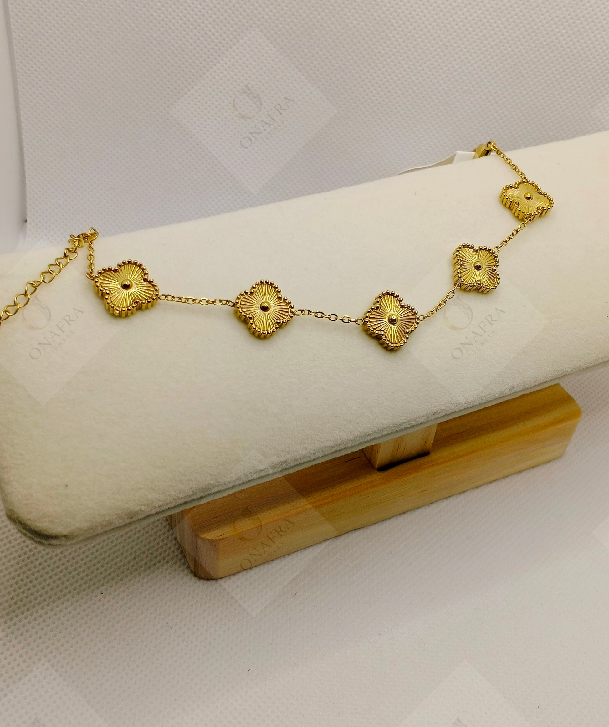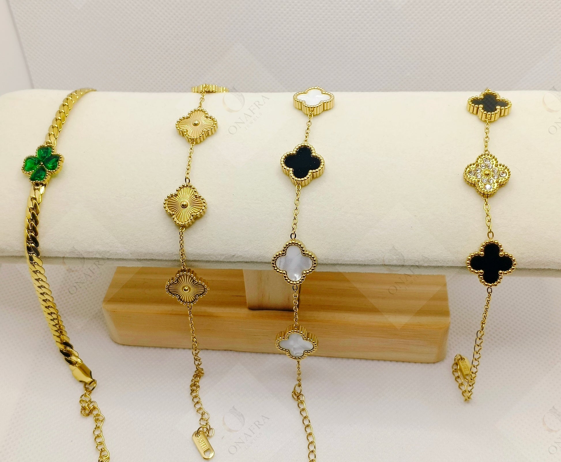 Elevate your wrist game with this 18K gold-plated stainless steel 4 chain bracelet, designed for both style and durability. Its sleek, minimalist design makes it perfect for daily wear or layering with other jewelry. Tarnish-resistant and hypoallergenic, this bracelet ensures long-lasting shine and comfort.