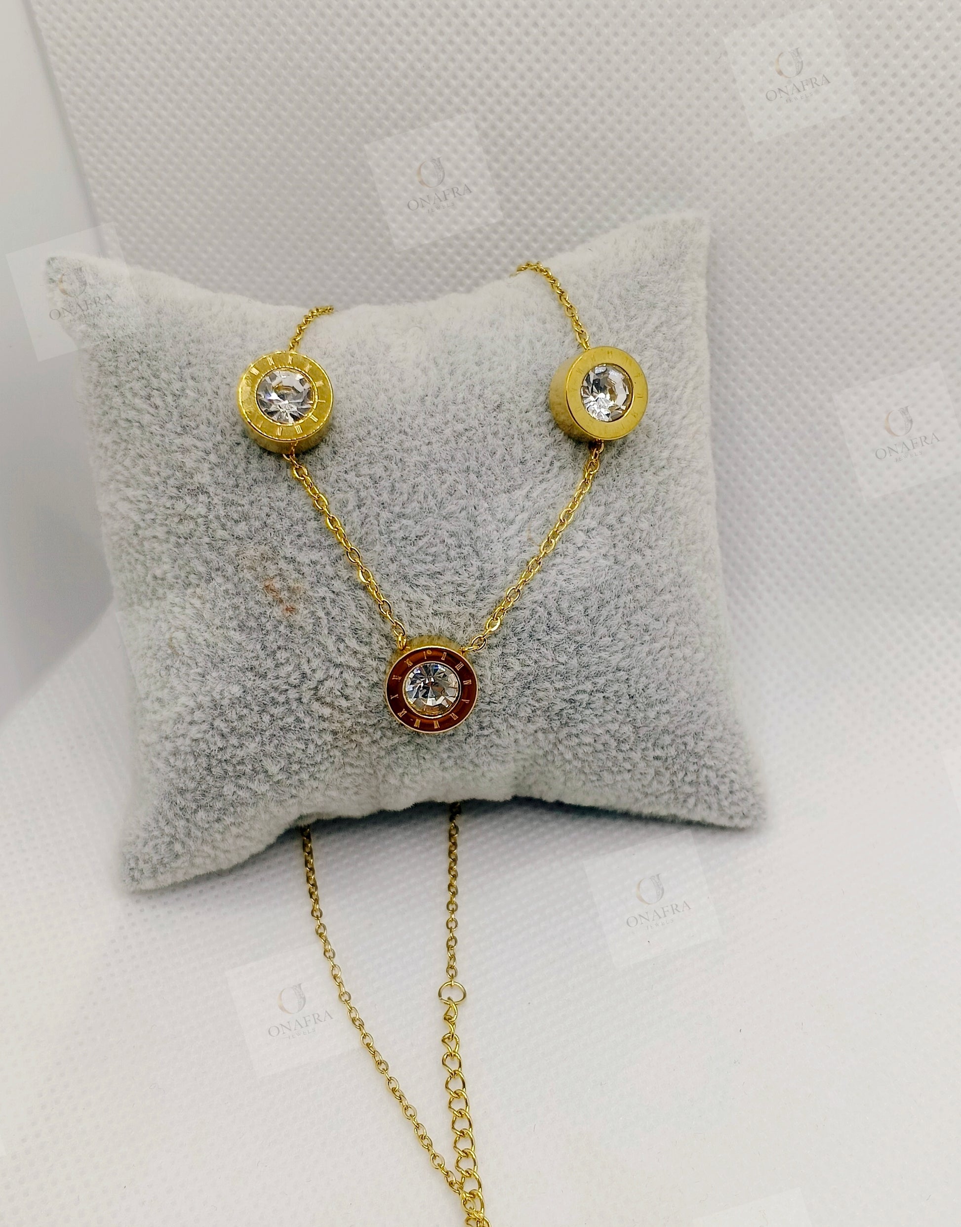 Upgrade your jewelry collection with these stunning 18K gold-plated stainless steel earrings and necklace. Designed for elegance and everyday wear, these earrings are: