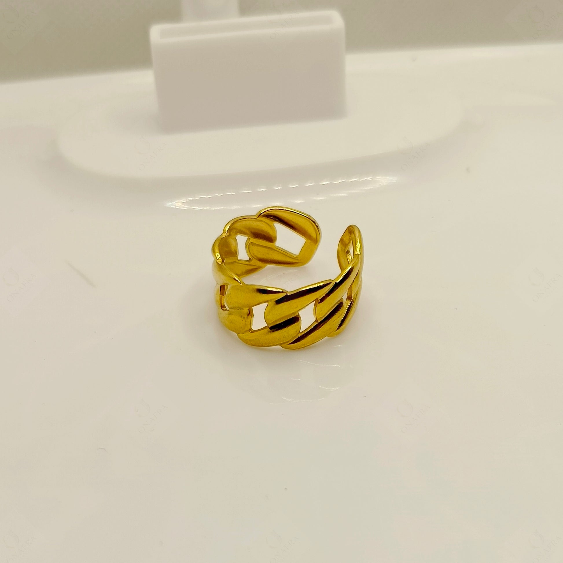Elevate your style with this adjustable 18K gold-plated stainless steel ring, designed for versatility and long-lasting beauty.