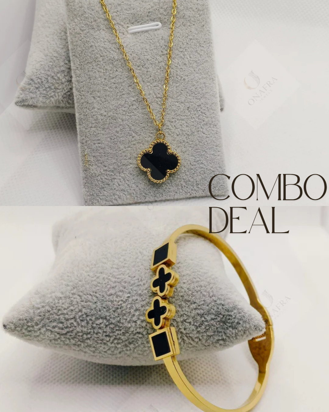 Upgrade your jewelry collection with this exclusive combo deal, featuring a stunning 18K gold-plated necklace and matching bracelet. Designed for both elegance and durability, this set is tarnish-resistant, hypoallergenic, and perfect for daily wear or special occasions.