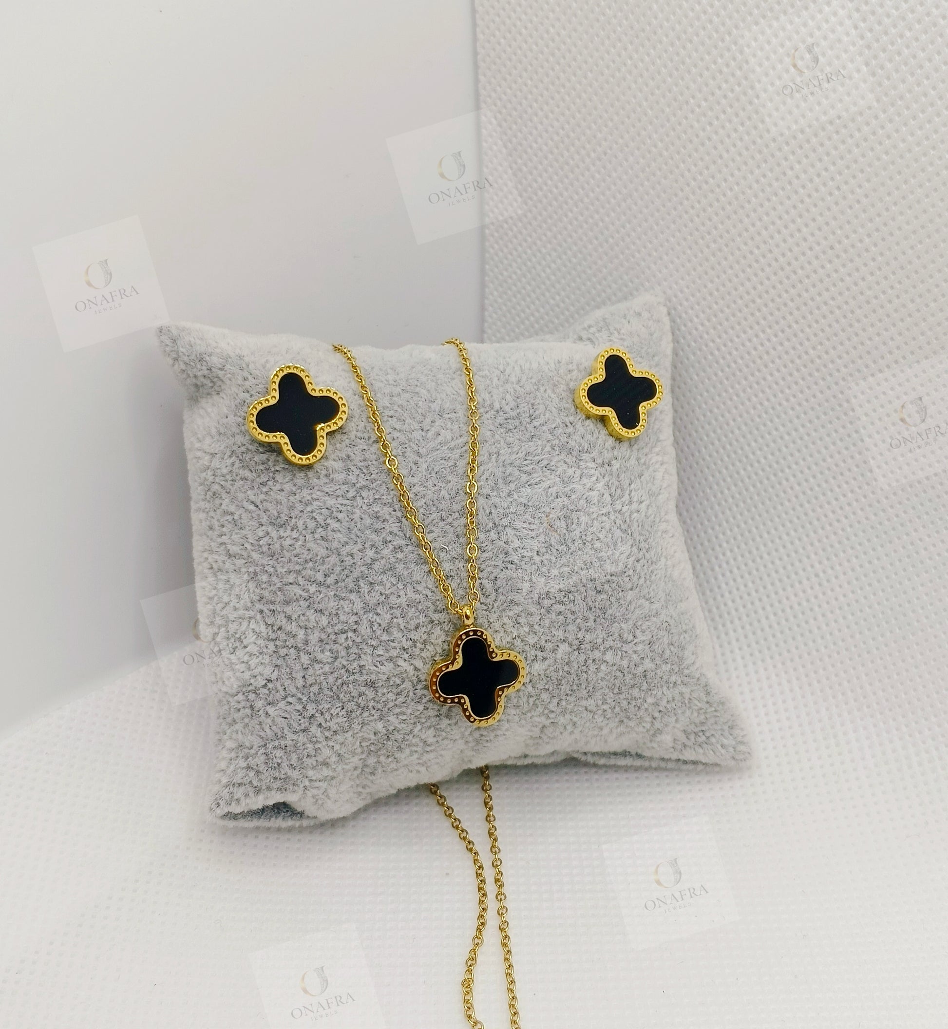 Upgrade your jewelry collection with these stunning 18K gold-plated stainless steel earrings and necklace. Designed for elegance and everyday wear, these earrings are: