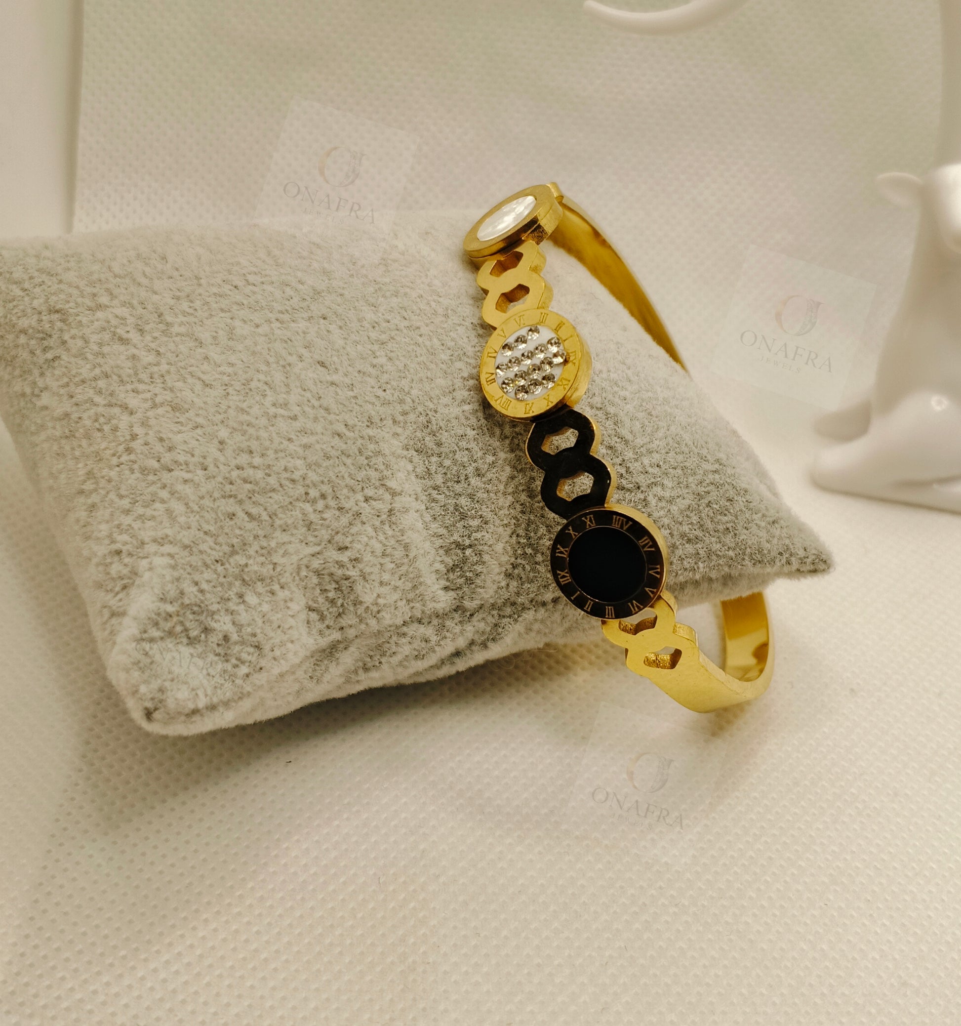 Make a bold statement with this 18K gold-plated stainless steel handcuff bracelet. Designed for both elegance and durability, this piece is tarnish-resistant, hypoallergenic, and perfect for everyday wear. Whether worn alone or stacked, it adds a stylish edge to any outfit.